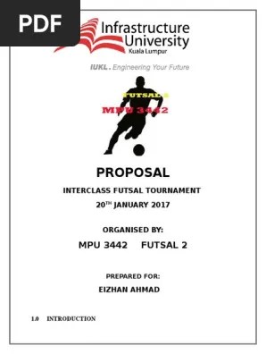 Want to download this document? Kumpulan gambar tentang contoh proposal turnamen futsal, klik untuk melihat koleksi gambar. Contoh cover proposal kegiatan futsal. Proposal pengajuan dana untuk mengikuti turnamen futsal . 12 contoh desain cover proposal paling menarik .